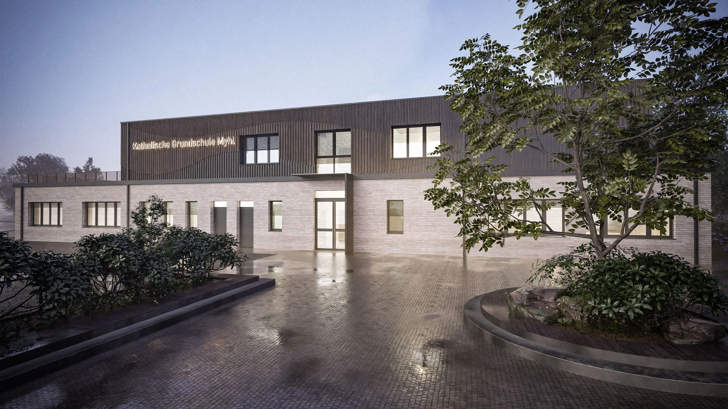 Die Gemeinde Myhl benötigt weiteren, moderneren Bildungsraum. Hierzu wurde ein Teil der alten Grundschule abgerissen und an dieser Stelle ein Ersatneubau geplant.
